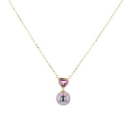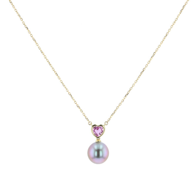 Hinerava’s Poésie Collection presents this romantic necklace that unites the brilliance of a pink sapphire, 0.36ct, with the timeless elegance of a Tahitian pearl. The heart, set in 14K yellow gold, radiates warmth and femininity, while the 8 mm rosie pearl adds a touch of ocean‑born sophistication.