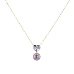 Hinerava's Poésie Collection presents this romantic necklace that unites the brilliance of a lavender sapphire, 1.24ct, with the timeless elegance of a Tahitian pearl. The heart, set in 14K yellow gold, radiates warmth and femininity, while the 8 mm rainbow pearl adds a touch of ocean‑born sophistication.