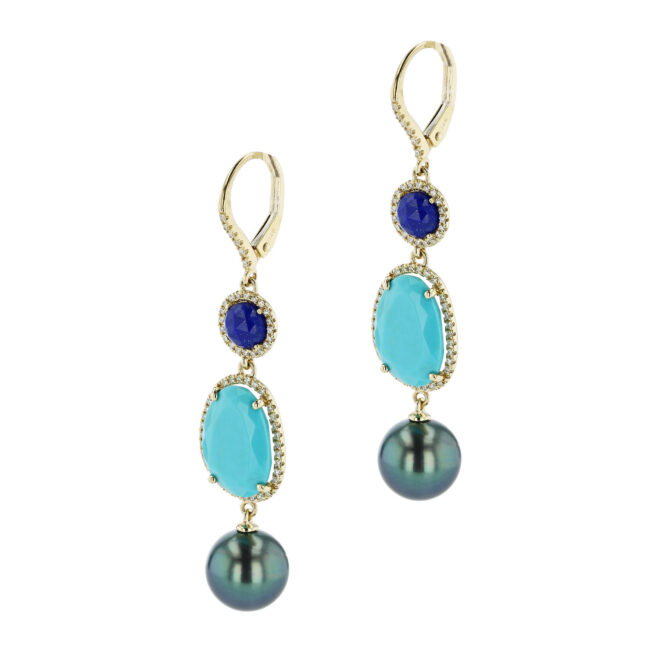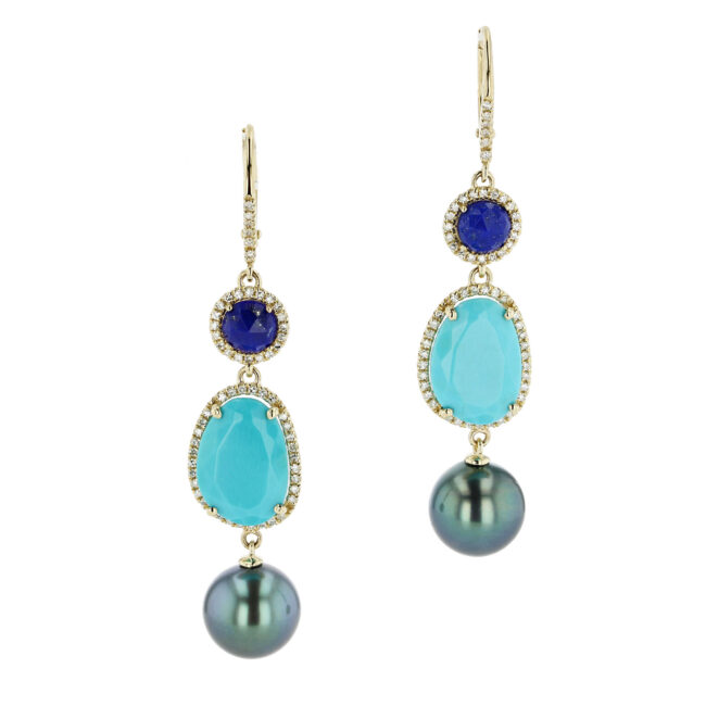 Turquoise, Lapis Lazuli & Diamond Earrings