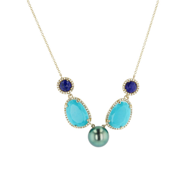 Turquoise, Lapis Lazuli & Diamond Necklace
