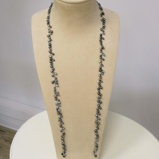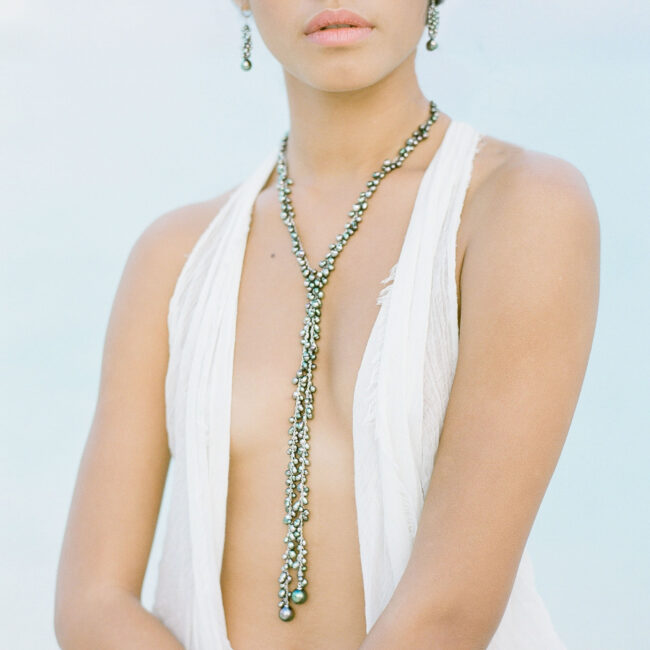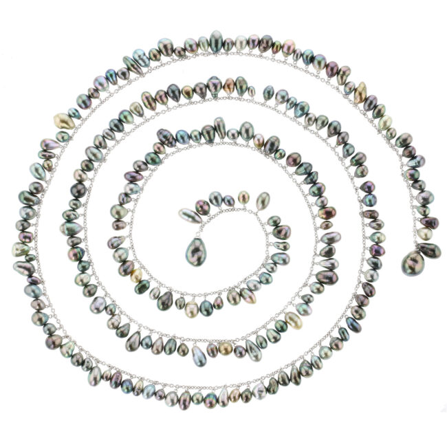 Hinerava’s Privilège Collection introduces a stunning lariat crafted from 45g of Tahitian keshi pearls, mounted on an 18K white gold chain. An exquisite masterpiece that will drape you in a cascade of multicolored pearls. This versatile lariat can be styled as a single or double strand, worn as a multi-layered bracelet, or even fashioned into a belt. Length: 94cm