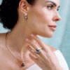 Hinerava’s Signature Collection features an exquisite ring set in 4.89gr of 18K white gold. The rare and carefully selected 8 & 10mm Tahitian pearls are beautifully contrasting while brillant diamond leaves, 0.79 carats, enwrap the pearls. A one-of-a-kind creation from Hinerava’s Signature Collection of dramatically vibrant and luxurious jewels.