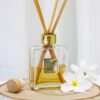 The 150ml glass bottle scent diffuser is securely sealed with a cork, and comes with 4 bamboo sticks. The original mother of pearl label makes the bottle unique, reusable and refillable.