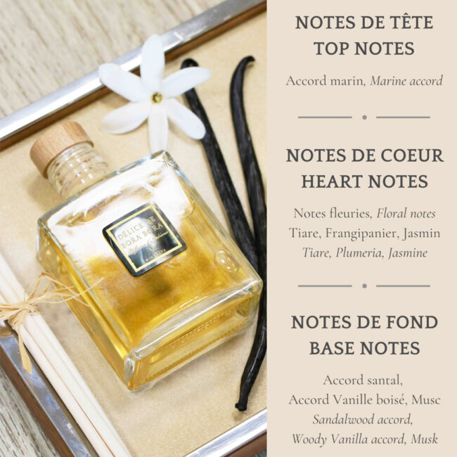 Ideal for any room in your home or office, Hinerava’s Diffuseur d’Ambiance Délice de Bora Bora provides a touch of tranquility and elegance, taking you on a fragrance voyage to Bora Bora.