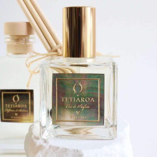 Elegantly presented in a glass bottle adorned with Hinerava’s signature mother‑of‑pearl label, this treasure captures the essence of Tetiaroa in every drop.