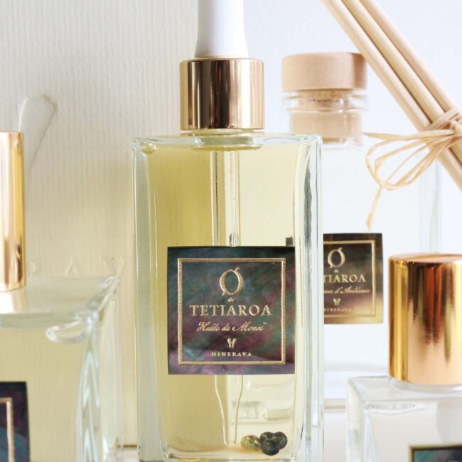 Elegantly presented in a glass bottle adorned with Hinerava’s signature mother‑of‑pearl label, this treasure captures the essence of Tetiaroa in every drop.