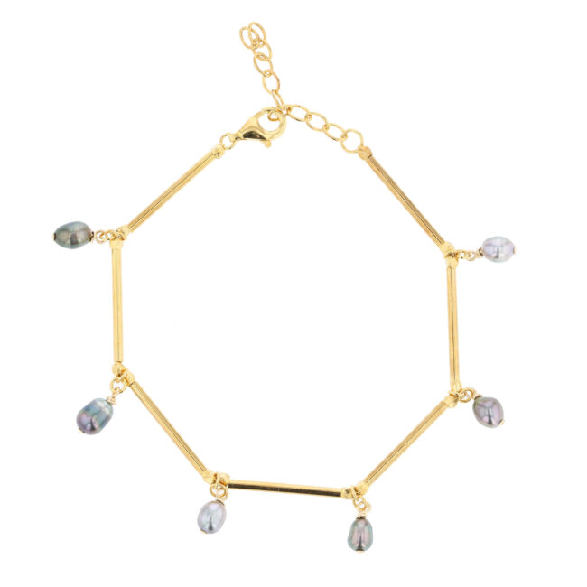 Hinerava’s Nacara Collection presents this elegant bracelet, set in vermeil, with 6 lustruous keshi pearls. This contemporary design is the perfect finishing touch to your favorite style and is great as part of a layered look. Length: 16cm with a 3,5cm extension chain.