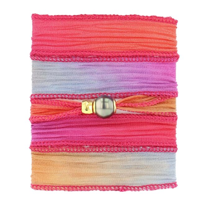 Hinerava's Elements Collection features an original and timeless design with a unique Tahitian pearl strung on a hand-dyed silk. Each silk is hand dipped and slight variations are the result of beautifully crafted pieces. Our team expertly matches the colors of Tahitian pearls with the silk upon which they are strung, however if you have a color preference please let us know. Silk Pearl Bracelet measures 35″
