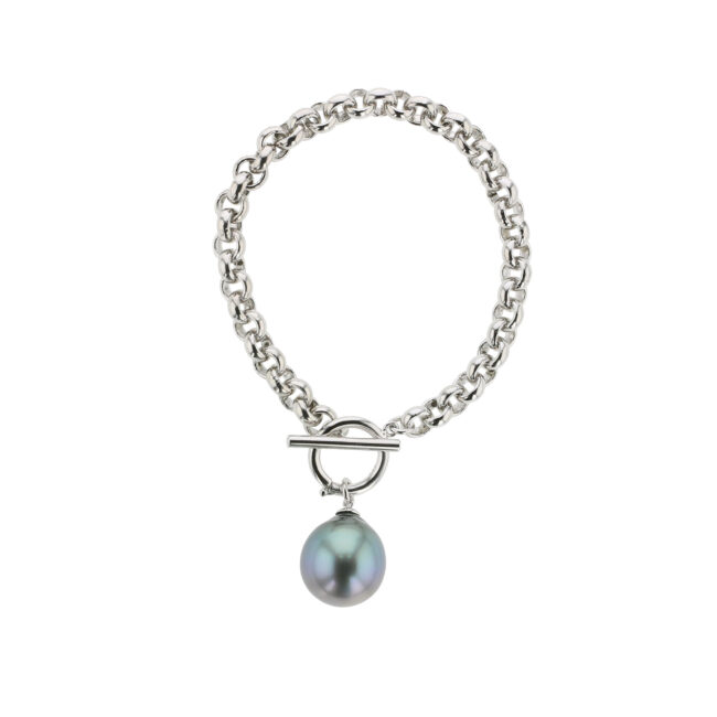 Hinerava’s Elements Collection presents this trendy chunky bracelet set in vermeil, that is customizable with our selection of lovely charms. This necklace closes with a toggle system while a 13mm Tahitian pearl completes the design with dinstinction. Length: 15cm
