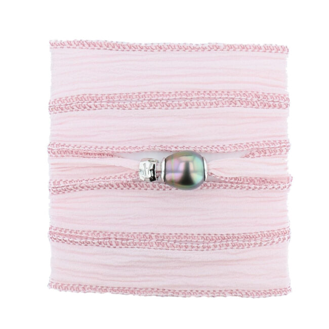 Hinerava's Elements Collection features an original and timeless design with a unique Tahitian pearl strung on a hand-dyed silk. Each silk is hand dipped and slight variations are the result of beautifully crafted pieces. Our team expertly matches the colors of Tahitian pearls with the silk upon which they are strung, however if you have a color preference please let us know. Silk Pearl Bracelet measures 35″