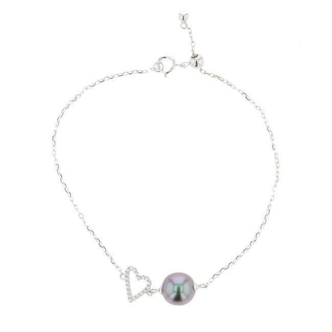 In this design, an 8mm, A quality Tahitian pearl whisper secrets of love to be carried forever. A flowing creation that is minimalist and stackable with your favorite bracelets.
