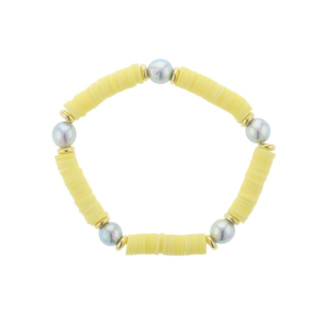 Yellow Clay Bracelet with 5 Keshi Spaced Out