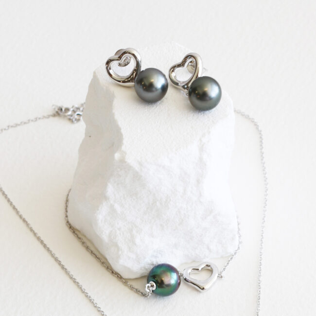 Thus were born the adjustable lariat and the adjustable bracelet designs. The chain slides through the heart for an adjustable length and is elegantly finished with a 10mm Tahitian pearl, that is whispering secrets of love to be carried forever.