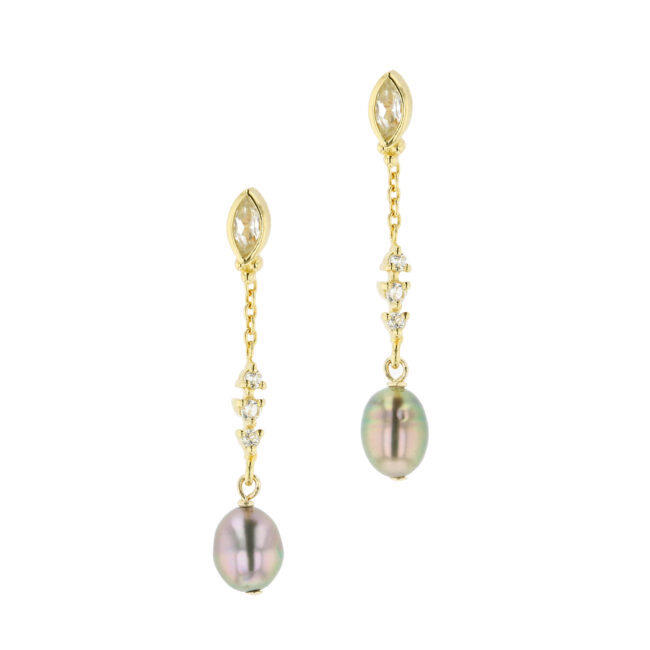 Marquise White Topaz & Keshi Earrings
