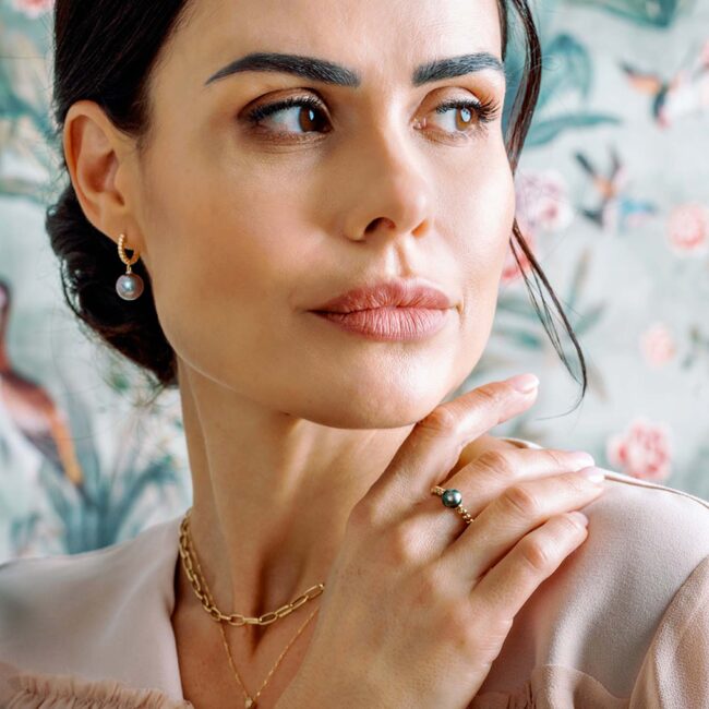 Hinerava’s Signature Collection features a quintessential classic twist ring set in 14K yellow gold, with a flawless Tahitian keshi pearl. This minimalistic ring makes the perfect everyday accesory and looks great as part of a stack.