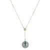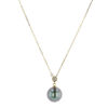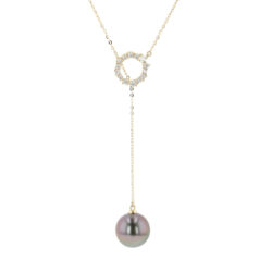 Hinerava's Signature Collection features an organically shaped centerpiece set with brilliant white diamonds, 0.153 carats, and an exquisite Tahitian pearl dangle. The chain slides through the back of the centerpiece for an adjustable length. This necklace is in 18K yellow gold. Length : 45.5 cm