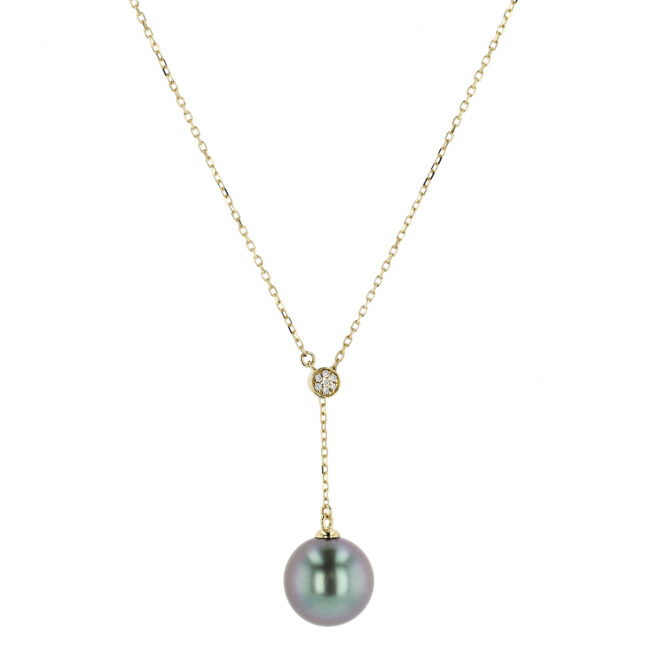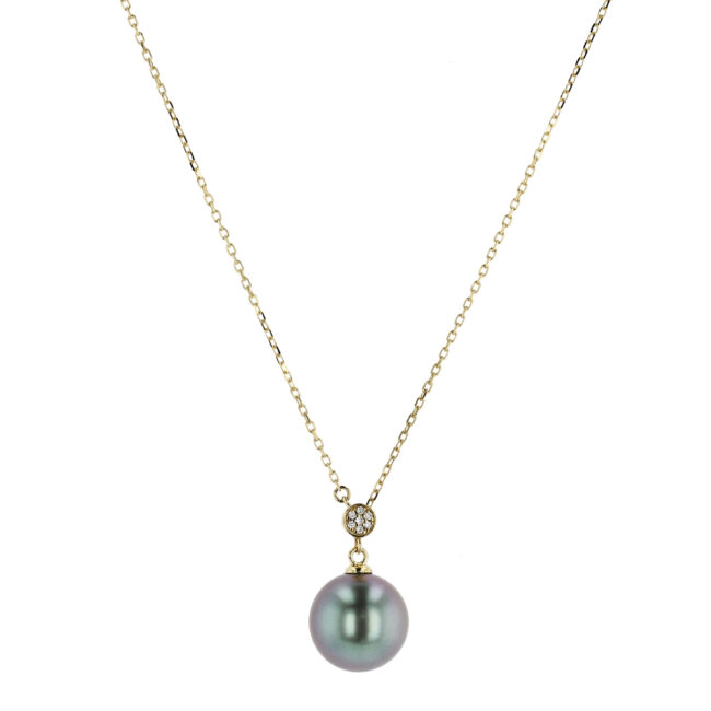 Hinerava’s Signature Collection features a delicate adjustable pearl necklace, composed of a single 10mm Tahitian pearl, set in 18K yellow gold. Lenght: 48 cm. This necklace is available in yellow and white gold.