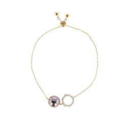 This adjustable circle lab diamond bracelet pairs the luminous depth of a 10mm Tahitian pearl with the refined sparkle of 0.36ct lab-grown diamonds, set in 18K yellow gold. Designed with adaptability in mind, the sliding clasp allows for a custom fit, whether worn solo for understated elegance or layered for a bolder statement. Length: 21cm