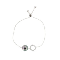 This adjustable circle lab diamond bracelet pairs the luminous depth of a 10mm Tahitian pearl with the refined sparkle of 0.36ct lab-grown diamonds, set in 18K white gold. Designed with adaptability in mind, the sliding clasp allows for a custom fit, whether worn solo for understated elegance or layered for a bolder statement. Length: 21cm