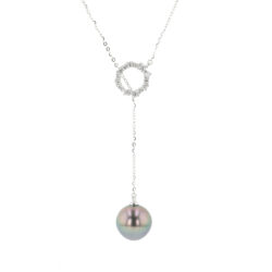 This adjustable circle lab diamond necklace pairs the luminous depth of a 11mm Tahitian pearl with the refined sparkle of 0.36ct lab-grown diamonds, in a 18K white gold setting. Designed to follow the lines of your décolleté, this adjustable necklace offers a refined balance of form and function. The sliding mechanism allows for seamless adjustment, inviting you to style it your way: layered over silk, tucked into a collar, or worn close to the neckline for a modern edge. Length: 47cm with a 5cm extension.