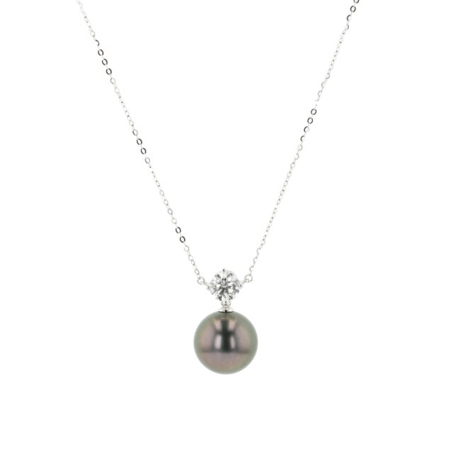 This solitaire lab diamond removable pearl necklace pairs the luminous depth of a 12mm Tahitian pearl with the refined sparkle of a 0.88ct lab-grown diamond, in a 18K white gold setting. Wear the solitaire alone for a sleek, modern silhouette, or add the pearl for a richer, more organic statement. The removable design invites you to shift effortlessly between moods, occasions, and styles. Length: 43cm with a 5cm extension.