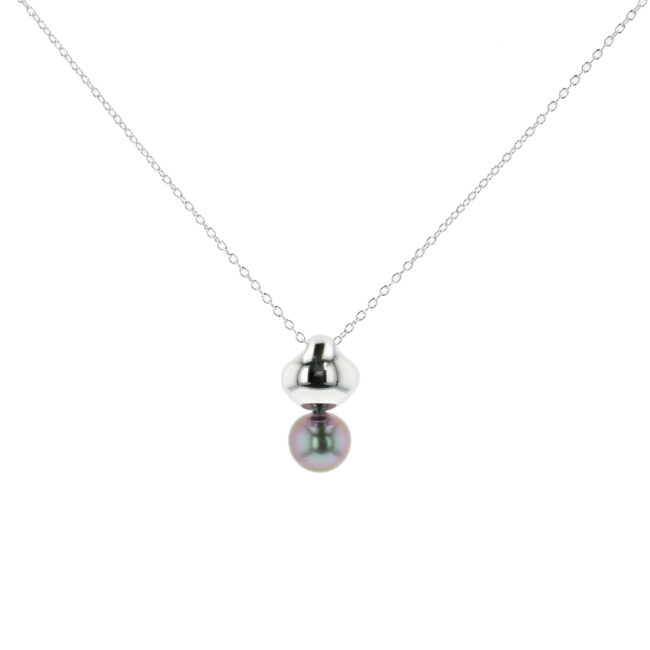 Hinerava’s Elements Collection presents this contemporary whale tail necklace, set in sterling silver brillantly finished with a splendid 9 mm Tahitian pearl. A modern Hinerava design to match with your favorite outfit.