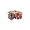 This exquisitely handcrafted ring features a chromatic, gem quality, 9mm Tahitian pearl that matches perfectly to a blush, cushion cut tourmaline, 3.56ct, mounted on 2.72g of 18K rose gold. A one-of-a-kind creation from Hinerava’s Privilège Collection of dramatically vibrant and luxurious jewels.