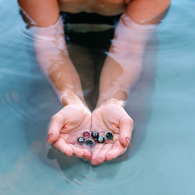 Each piece in Hinerava’s Privilège Collection embodies timeless luxury. This exquisite, one of a kind ring features an elongated cushion cut, lagoon blue tourmaline weighing 8.20 carats, with a lustrous 12.64mm blue green Tahitian pearl, set in 4.8 grams of 18K white gold. A regal and dramatic design that radiates elegance.