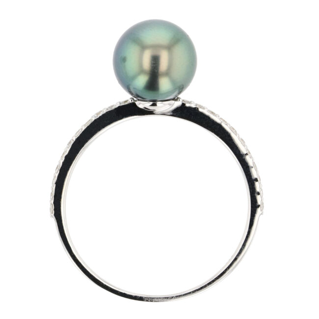This strikingly elegant ring features a luminous 8mm Tahitian pearl set at its center, adorned on each side by brilliant diamonds, 0,15ct, and set in 14K yellow gold. The pearl’s soft glow contrasts beautifully with the brilliance of the diamonds, creating a harmonious balance of light and texture. This classically refined design is a versatile piece that transitions effortlessly from everyday elegance to evening glamour.