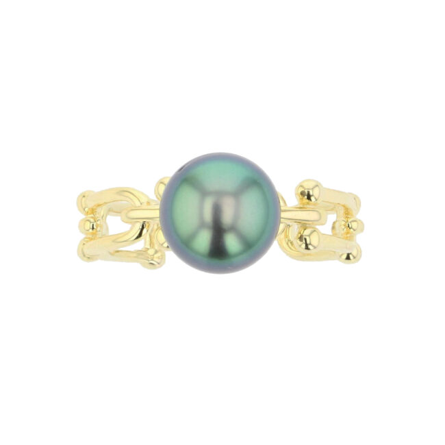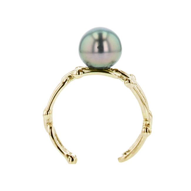 Hinerava’s Elements Collection presents this contemporary lock chain ring, set in vermeil, with a splendid 8mm Tahitian pearl. A modern Hinerava design to match with your favorite outfit.