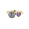 Hinerava’s Poésie Collection presents this romantic ring , set in 14KY, that combines the brilliance of a purple-pink ,heart cut sapphire, 0.71ct, with the timeless elegance of a Tahitian pearl.