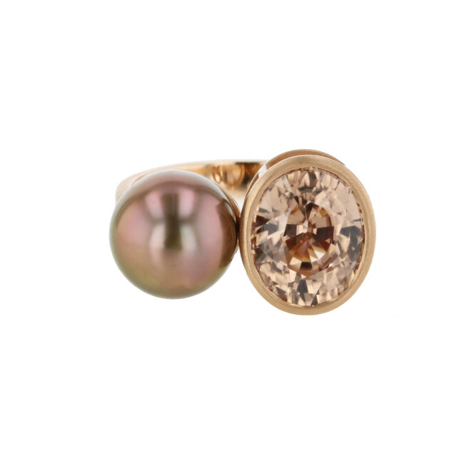 Find your timeless elegance in this exceptional ring from Hinerava’s Privilège Collection that features a rosé 9mm Tahitian Pearl, carefully chosen to complement an oval cut blush zircon, 6.20 carats, mounted in 18K rose gold bezel with satin finish. A refined jewel from Hinerava’s Privilège Collection that marks life’s most meaningful moments and reflects endless love.