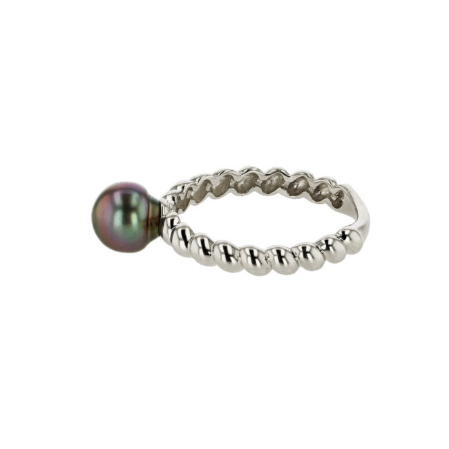 Hinerava’s Signature Collection features a quintessential classic twist ring set in 14K white gold, with a flawless Tahitian keshi pearl. This minimalistic ring makes the perfect everyday accesory and looks great as part of a stack.