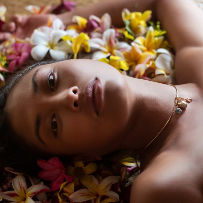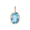 Hinerava presents this lovely blue topaz charm in an oval cut 7x9mm and weighing 1.99 carats, set in 14K yellow gold. Blue topaz is a stone of peacefulness, loyalty and love. In addition to these qualities, we selected this gem as part of our collection for its striking blue color reminiscent of our lagoons.