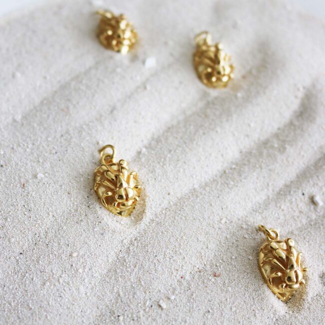 Hinerava presents this coconut crab charm, set in vermeil. Coconut crabs, also called “kaveu” in Tahitian, are the largest land crabs in the world and are also extremely powerful. We love the strong design of this charm as it is authentic keepsake from Tetiaroa.