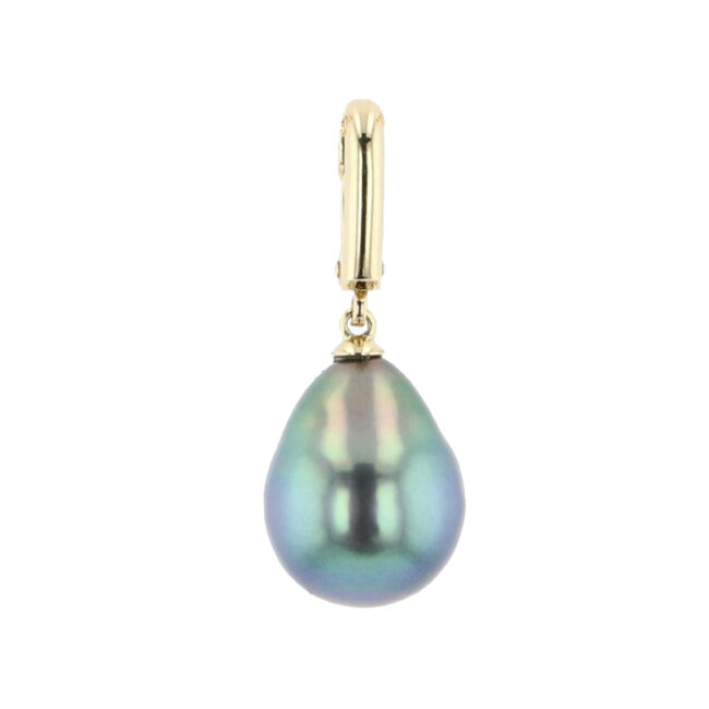 Hinerava features a charm set in a 14K yellow gold, with a lustrous 8mm Tahitian pearl. The natural beauty of each pearl is carefully chosen for these special pieces. They are sure to add a unique feature to any charm collection. This charm is mounted on a clip for versatility.