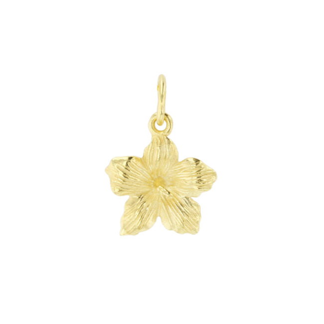 Hinerava presents this hibiscus flower charm set in vermeil, inspired by the delicate and colorful hibiscus flowers that are ubiquitous in Polynesia.