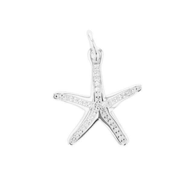 Hinerava presents this starfish charm, adorned with white topaz and set in sterling silver. Starfish are a beautiful emblem of the sea and one can witness their grace while snorkeling or scuba diving in French Polynesia.