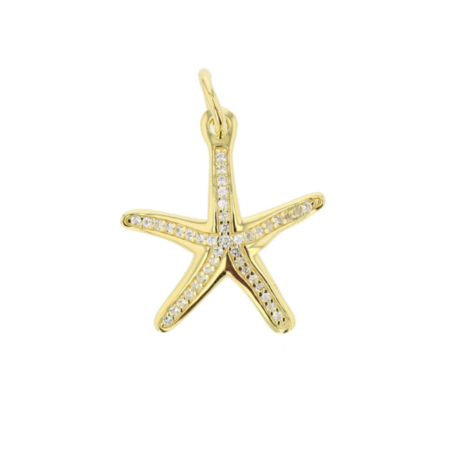 Hinerava presents this starfish charm, adorned with white topaz and set in vermeil. Starfish are a beautiful emblem of the sea and one can witness their grace while snorkeling or scuba diving in French Polynesia.